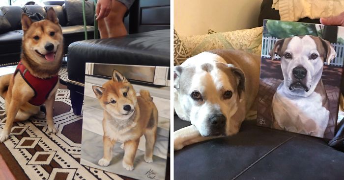 I Paint Custom Pet Portraits And Seeing Them With Their Paintings Is Definitely The Best Thing (11 Pics)