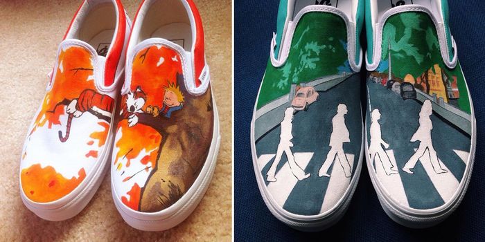 Hand-Painted Shoes With Calvin And Hobbes, The Beatles, And Other Pop Culture Icons