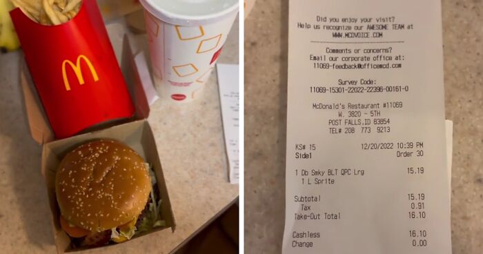 Christopher Olive, known on TikTok as @topherolive, was no longer lovin’ it after he received his McDonald’s bill for a Smoky Double Quarter Pounder BLT burger, large fries, and a Sprite. The TikToker from Idaho was baffled when he had to part ways with $16.10 for the meal.
