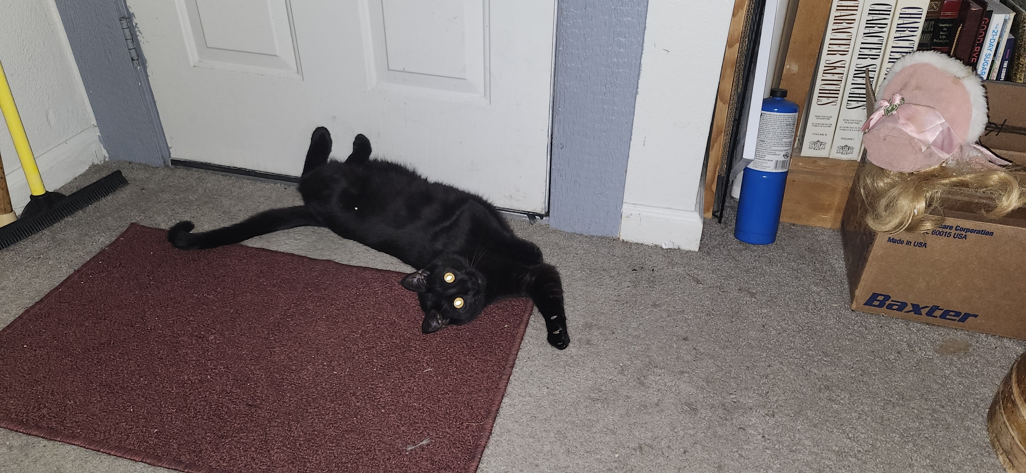The cat distribution system works in mysterious ways. We adopted this cat from the shelter 4 (!!!!!) days ago and she was incredibly shy, timid, and scared. She would hiss at us when we came into her room and would hardly leave her igloo bed. Fast forward to now, she is quickly becoming my Velcro cat. After two days I coaxed her to come to the living room with treat bribery, and to my surprise she jumped up on the couch with me. Now, she follows me around, comes when I call (usually. She is still a cat after all), and sleeps curled up next to us on the couch. I was expecting weeks of aloof-ness from her. She truly was meant to be with us🖤🐈⬛