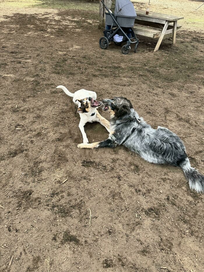 Adopted An Acd Mix, Turns Out Her Sister From The Same Litter Goes To The Same Dog Park. They Have, Uh, An Interesting Style Of Playing Together