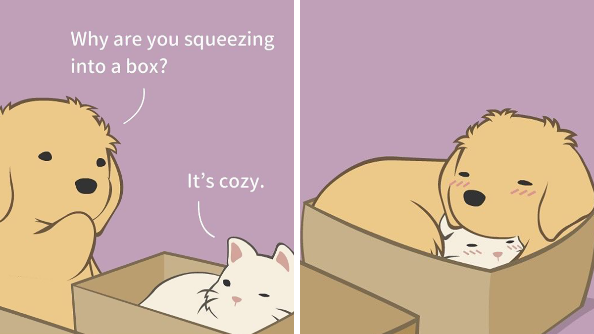 Pin-Tsung Lin's comics offer cute explanations of certain animal behaviors and show them in a quite different light. Have you ever wondered why cardboard boxes are the best beds for cats but dogs don't seem to bother with them? Well, maybe dogs just feel lonely being alone in a box?