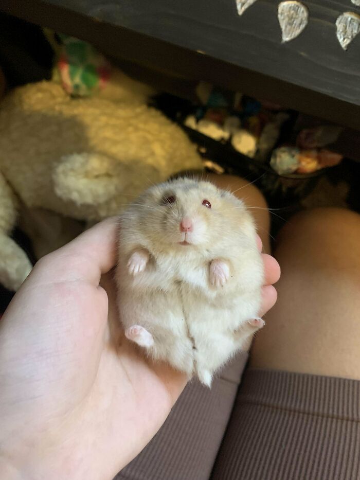I Was Having An Anxiety Attack, So I Took Kiwi Out For Some Crucial Hamster Therapy And He Peed On My Leg. This Is The Face Of A Criminal