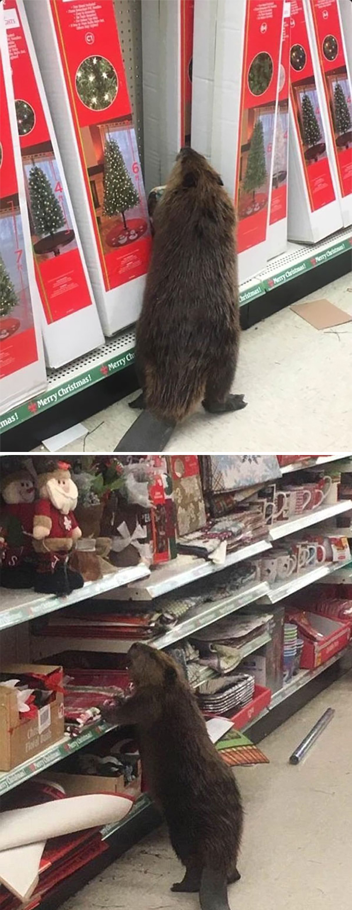 Beaver Spotted In Supermarket Looking For An Artificial Christmas Tree