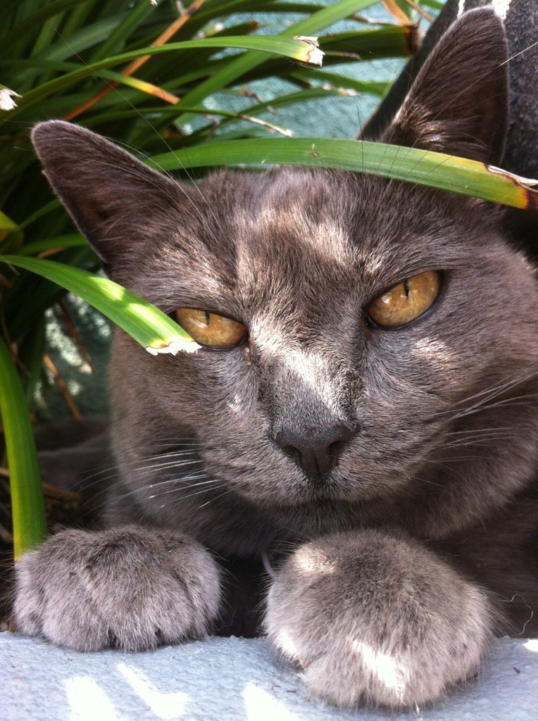 My old gray girl Wintressia was an outdoors cat for the first part of her life (my mom didn't let any of the animals come inside the house.) She would usually sleep in the garage and one of her favorite places was on top of my sister's New VW Beetle XD My sister would curse her out when she'd find little pawprints down her windshield. winwin4-68...c2c434.jpg