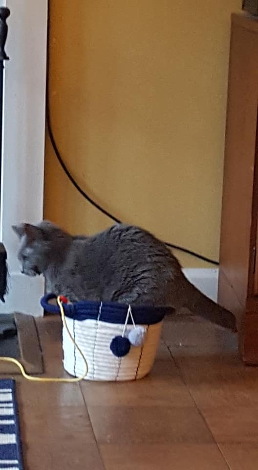 He Likes To Sit On The Laundry Basket, As Soon As I Open The Bathroom Door 😂 100% Effective Cattrap!