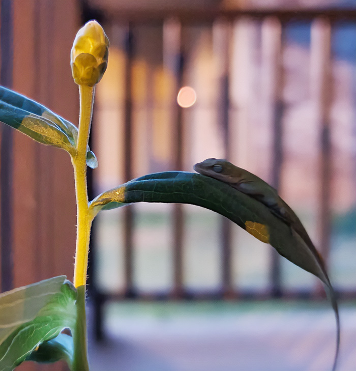 Lizard Friend That Is Always Sleeping On Plants Around My Porch