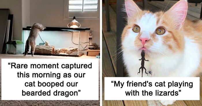 My Cat Pretty Much Adopted My Rescue Lizard As Her Weird Scaly Kitten And The Two Are Inseparable