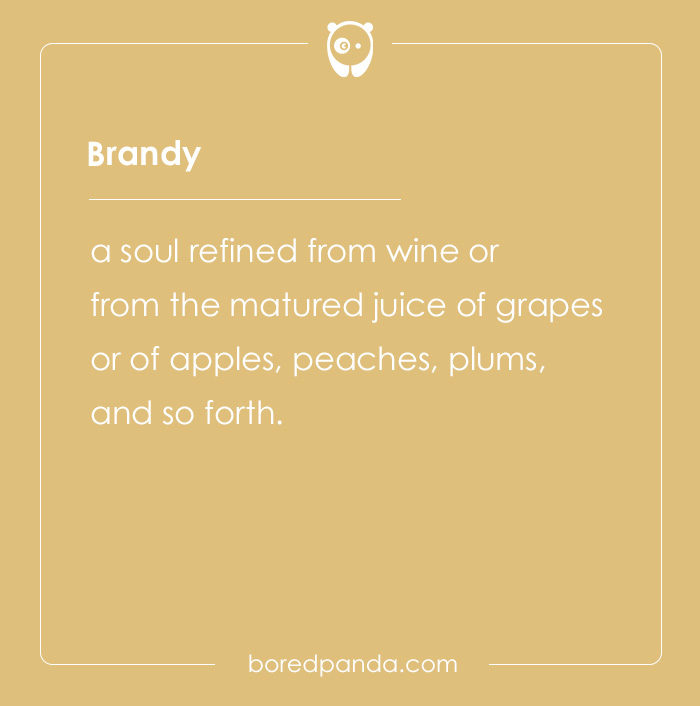 Brandy — a soul refined from wine or from the matured juice of grapes or of apples, peaches, plums, and so forth.