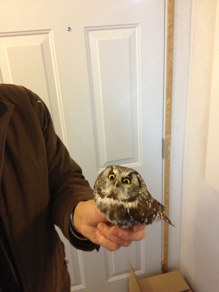 This Baby Owl Hit Our Window. Gave Us This Look The Whole Time