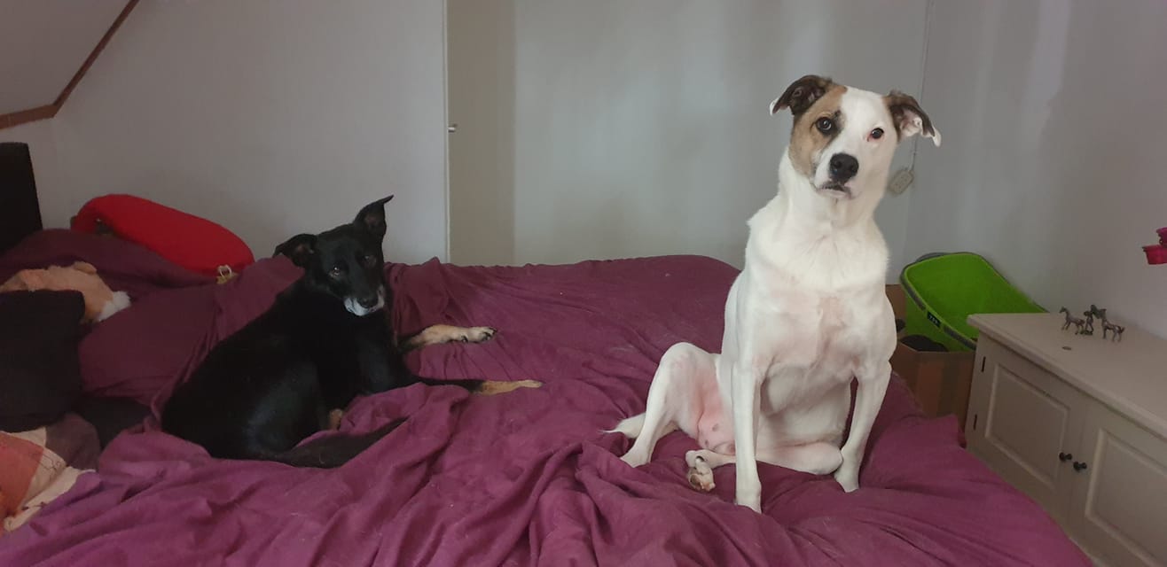 I adopted these 2 dudes! The white one is Max I adopted 6 year ago.(Is 9 now, and has been in the shelter 3 years) Then his friend passed away, and I adopted Rickon, the black guy, 2 months ago! He's 10 years old and has never seen a house before. I Love him so much! I'm so happy with my adopted boys! 248945671_...46a1c0.jpg