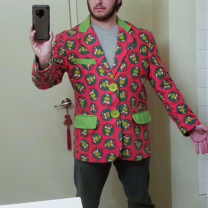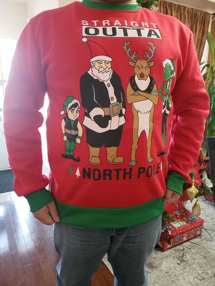 My Bonus Son Needed An “Ugly Christmas Sweater” For A Party Tonight. Fingers Crossed He Likes It (I Can’t Stop Laughing)