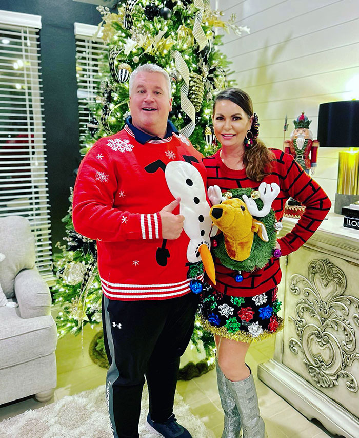 She and my stepdad spent hours adding the lights themselves and she won the ugly sweater contest that year.
