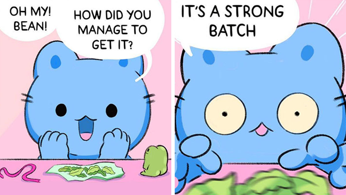 Meet Rebecca Bun, the creative mind behind ‘Foo Bun.’ Rebecca described her comic series in three words: “COZY, RELATABLE, FANTASY (mostly).” If that sounds intriguing, don’t hesitate to scroll down and dive into the adventures of two adorable buddies—Luna, the cat, and her tiny companion, Bean the frog.