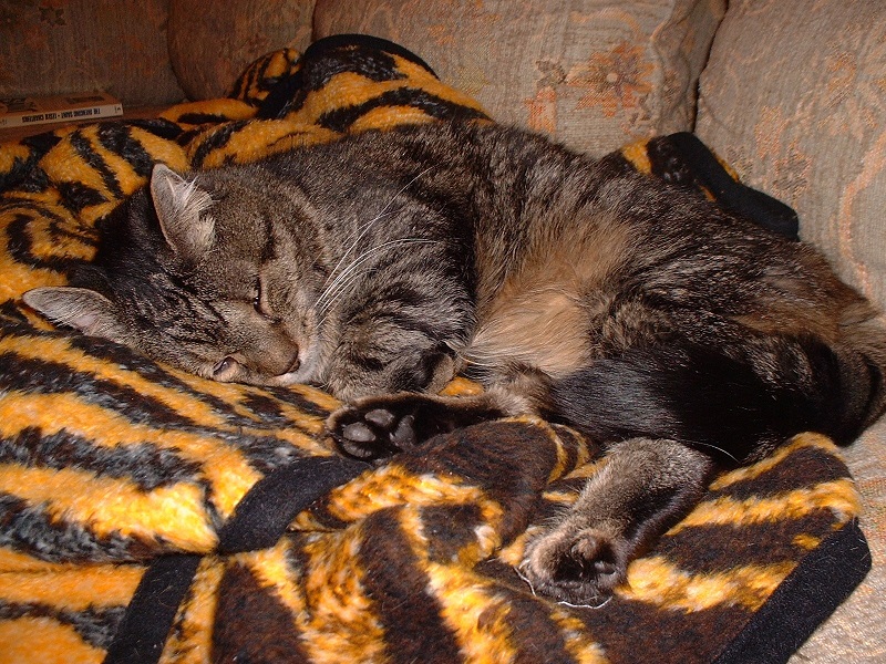 That is a very relaxed and happy cat! You have clearly done an excellent job of making him feel safe, secure and loved, so much so that he has chosen to sleep in the single most vulnerable position for a cat to sleep in, ie: on his back with his stomach openly on show and sleeping very deeply. Well done to you, you have a beautiful, happy, healthy and trusting little chaos machine!