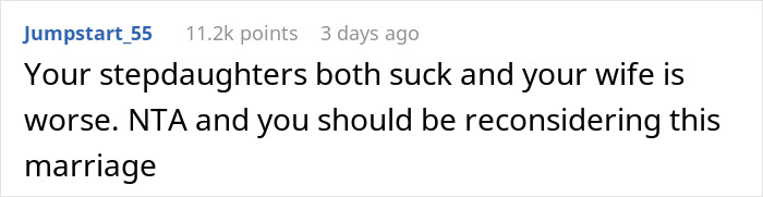 Load More Replies...These were really good responses. Also, stealing a passport is a massive crime for a reason. That lack of boundaries and entitlement is very dangerous to be around. Clearly they are used to stealing from him and his daughter, and who knows who else. They also attempted to steal time with a father and daughter. What heartless Koontz. My first and second step mothers would be proud.