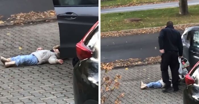 After refusing to get up from the driveway, the little girl was plucked up in one effortless motion and carried inside. “What’s even funnier is that she is more than 3-feet-tall and over 37 pounds heavy and the jacket didn’t break,” wrote her mom who filmed the video, “She often does stuff like this and this is just how we love her.”