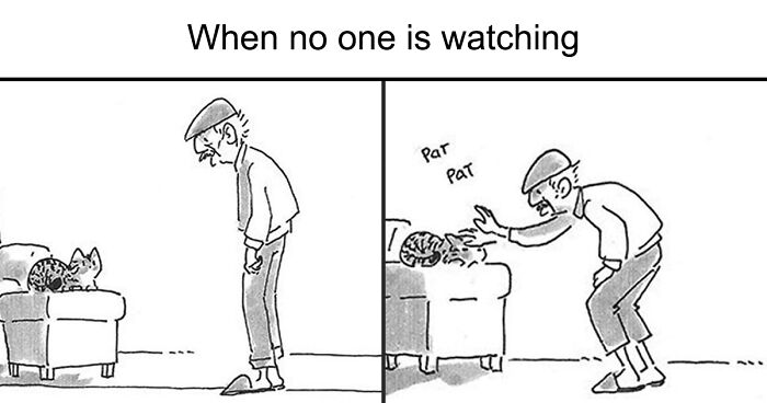 Full-time comic creator Akiro Tea’s life seems like a yin and yang. Last time, we covered illustrations she created while petsitting a dog but now it’s all about a feline. Akiro has shared a set of intimate comic strips about the relationship between her dad Pietro and her pet cat Fritz. It reveals their bond by offering glimpses into their everyday lives one cartoon drawing at a time, and you’ll definitely feel like you know the two after you’re done scrolling.