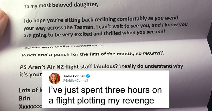 Bridie’s dad asked the airline staff to hand her a letter on an airplane