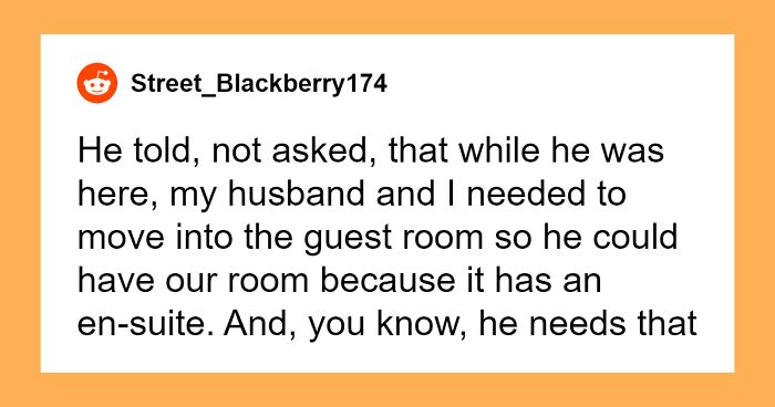 I have more sympathy for the fuzz I picked out of my pocket and threw away than I do for this muhhcluckah smfh. If it were me, I would have punched him in the face after he *told*, not asked, TOLD me he was staying and that he would be taking the master suite. The entitlement is shocking to say the least