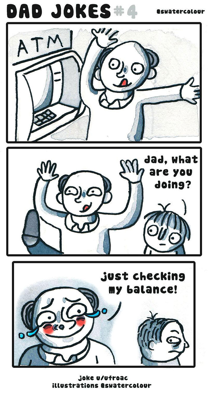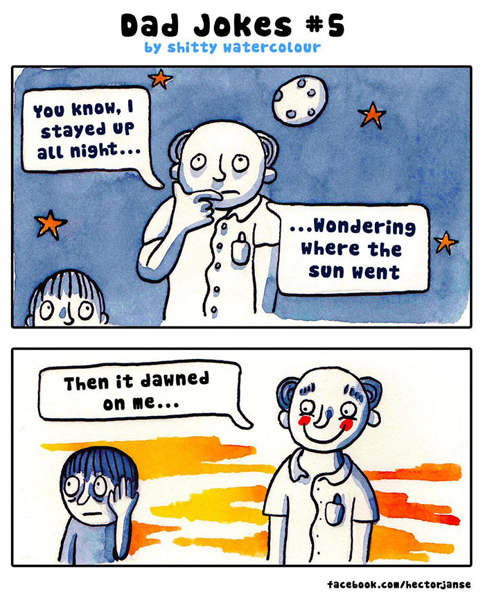 Hector Janse van Rensburg, the painter behind Shitty Watercolour, has a wonderful series of images in which he illustrated 'dad jokes' in his signature artistic style.