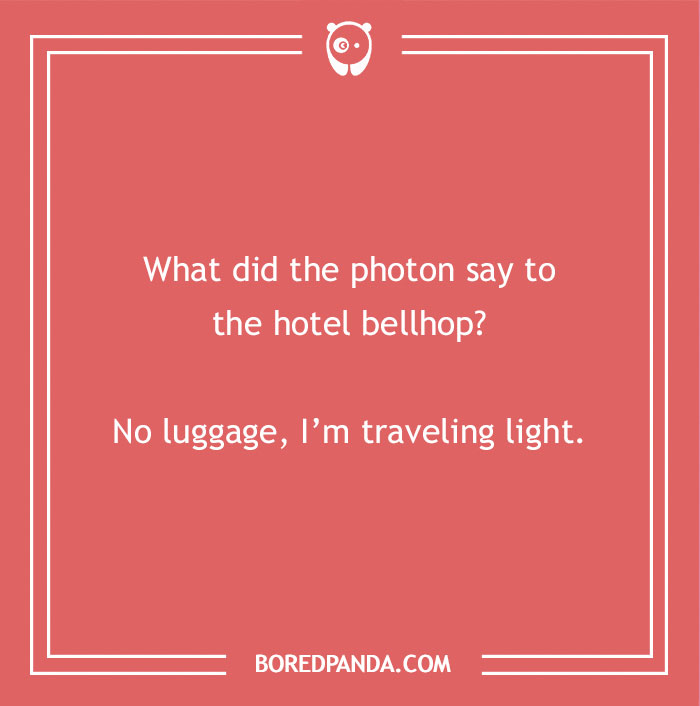 What did the photon say to the hotel bellhop?