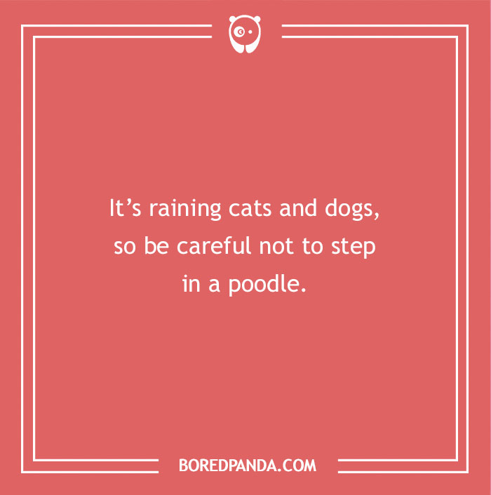 It’s raining cats and dogs, so be careful not to step in a poodle.
