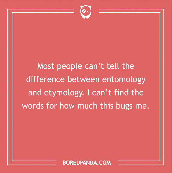 Most people can’t tell the difference between entomology and etymology. I can’t find the words for how much this bugs me.