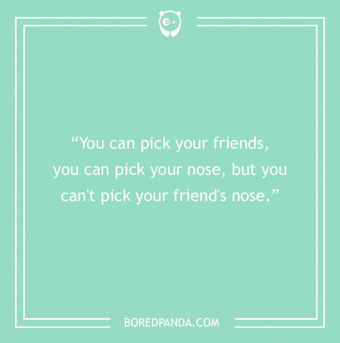 "You can pick your friends, you can pick your nose, but you can't pick your friend's nose."