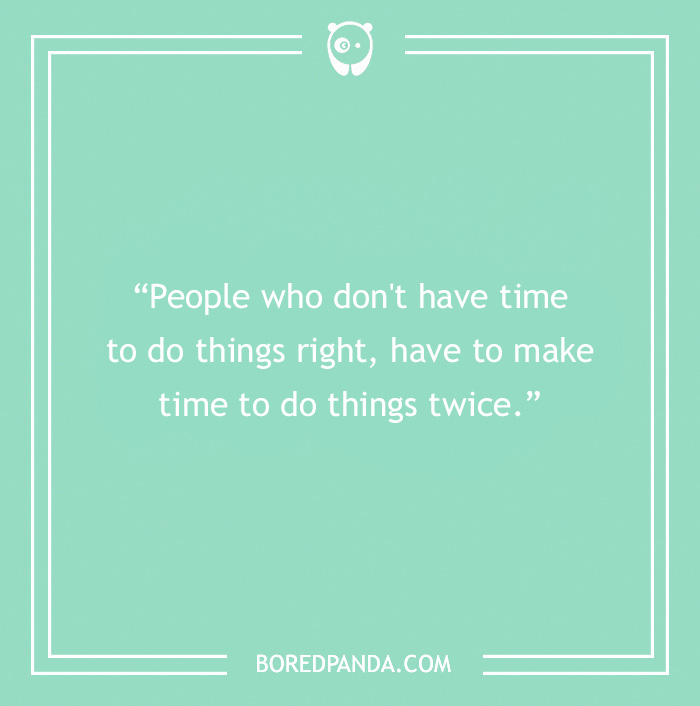 "People who don't have time to do things right, have to make time to do things twice."