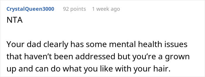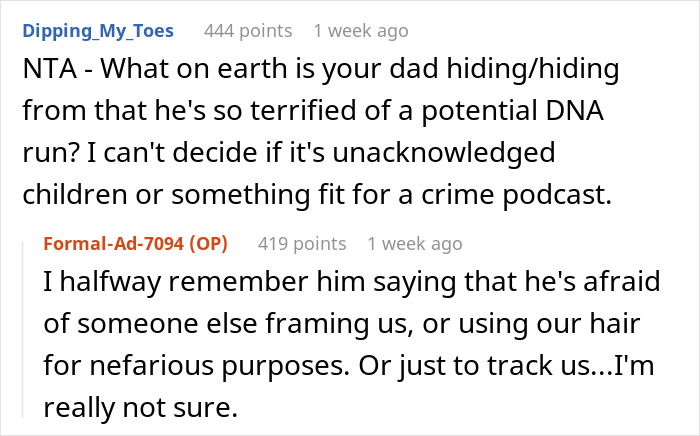 “My (23F) dad (61M) has this thing where he asks everyone in the family to collect their shed hair from their wash days or combing or brushing and place it in a drawer in his room,” the author explained and added, “I wish I was making this up, but I swear I’m not.”