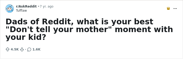 When Reddit user Tufflaw asked people on the platform to share their best “don’t tell mom” moments, dads and children alike came forward with stories that were funny, mischievous, and surprisingly wholesome. Here are some of the most memorable ones.