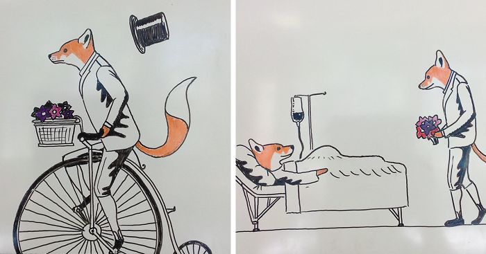The artistic historian, who goes by the name of jmayne, recently posted the pictures on Imgur and they've since been viewed over 100k times. "Every day (except when students draw), I draw a quick Picture of the Day 5-10 minutes before my first morning class," wrote the artist. "Sometimes I take student suggestions, sometimes my creativity is sapped, other times I draw whatever weird thing is on my mind."