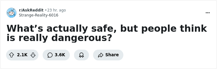 So, why do we treat the harmless like horror? Well, one Redditor wondered the same thing and asked, “What’s actually safe, but people still think it’s really dangerous?”