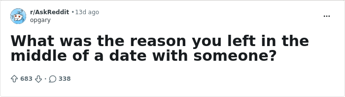 An online community asked people to share the exact moment they walked out mid-date, and the thread is a car crash. Each one, worse than the next. These are not people who deserve a second drink. These are people who deserved a bill, a firm goodbye, and an immediate group chat debrief.