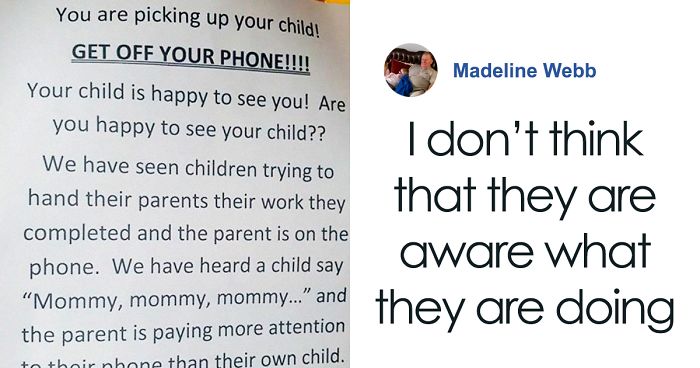 When a child sees you with your face constantly glued to your smartphone, they’ll think it’s the right thing to do. And that’s paving the way for a lot of problems down the road. A lot of people seem to think that this is an issue, too. So when Juliana Mazurkewicz posted a photo of a note encouraging parents picking up their kids from daycare to get off their phones, the post went viral with over 2 million shares. Scroll down for Bored Panda’s interview with pediatrician Dr. Liz Donner about the effects that parents behaving this way has on their children, as well as for our chat with Juliana.