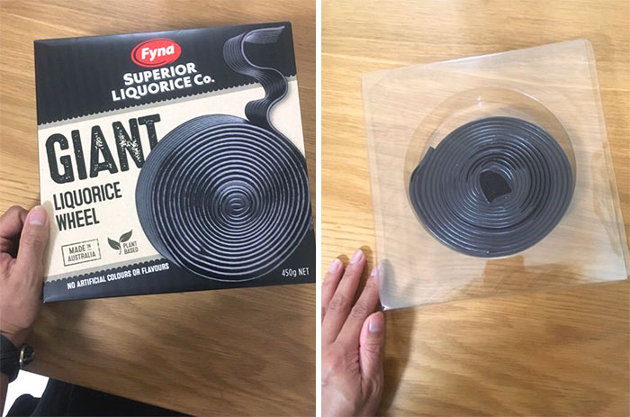 The Amount Of Plastic Packaging Around This “Giant” Licorice Wheel