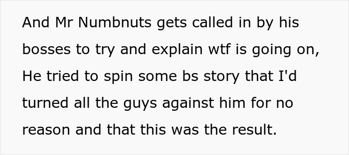 Load More Replies...Great job by irritating Farquhar, he certainly shows who is in the driving seat when it comes to dealing with overzealous management types. As one of the commenters said "Don't screw with the veteran employees"