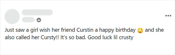 she would have been bullied as a kid and kids would call her crusty cursty