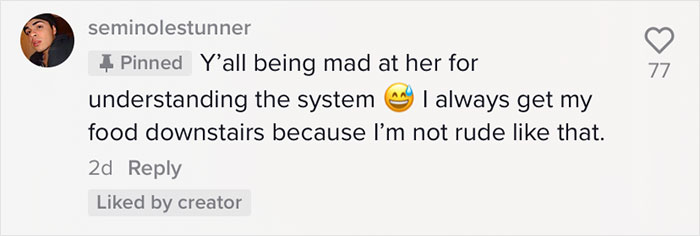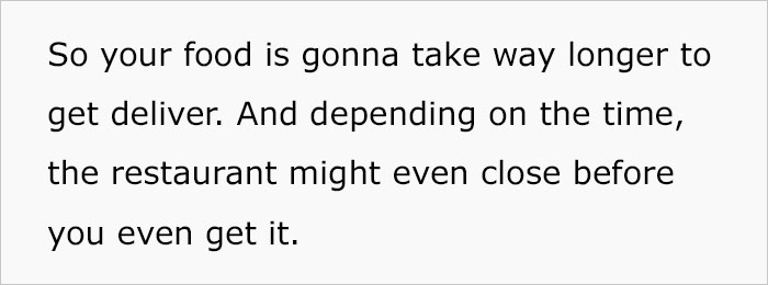 She explained that delivery drivers know if they’re going to get tipped even before accepting an order, so the customer might wait for longer as nobody will want to take that order but when someone will, it will probably be a new employee.