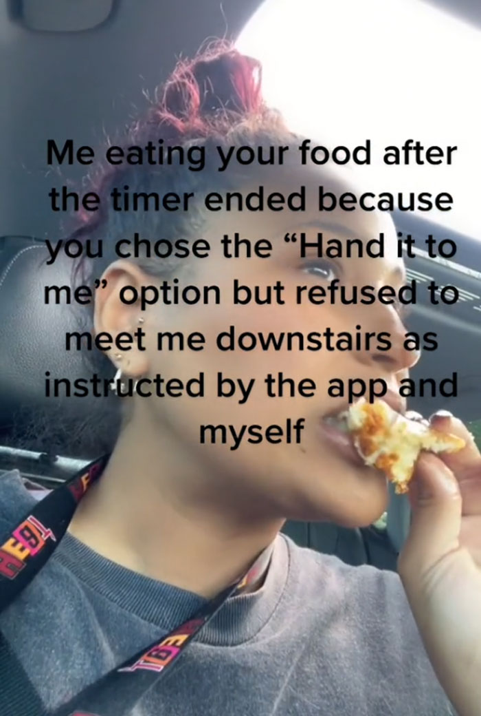 She later explained that the customer chose the “Hand it to me” delivery but never showed up despite several requests to come outside