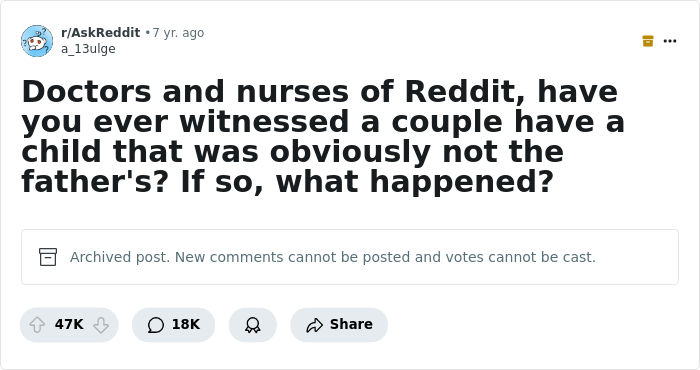 “Doctors, Have You Ever Witnessed A Couple Have A Child That Was Obviously Not The Father’s?” (50 Answers)