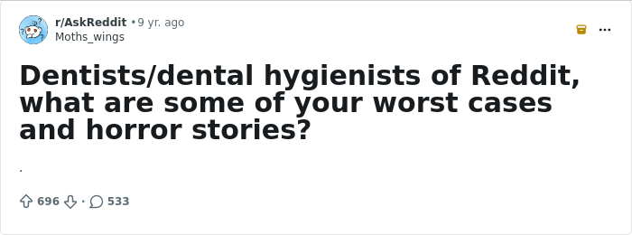 And when these patients finally show up, dentists are the ones who have to deal with the aftermath. Which means they’ve seen it all. Across various Reddit threads, they’ve opened up about the most alarming and unsettling cases. Read them below.