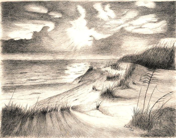 Destin Beach, Fla. Overlooking The Gulf Of Mexico, One Of Florida’s Most Beautiful Beaches Indeed! I Did This One On A Regular Sketch Paper And Black Pencil 12 Years Ago! Check My Website: Luzimmscratchart.com