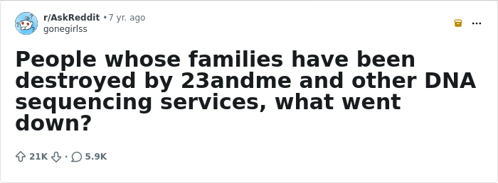 On Reddit, people who took DNA tests and discovered way more than they bargained for shared what they learned. Scroll down to read their stories and see just how wild it can get.