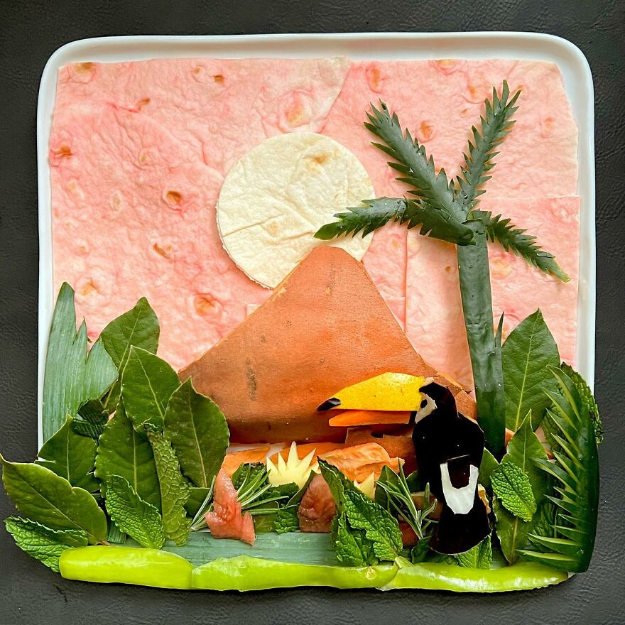 We were curious about the advice that Langberg would give food artists who are just starting out. Here's what he told Bored Panda: "I would tell them not to be too ambitious when starting out. Start with simpler images but execute them really well paying attention to detail and then work your way up to more complex pieces."