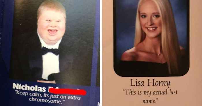 In Jahrbüchern verewigen wir unser damaliges Ich, kurz bevor wir mit der Schule fertig sind. Leider können Sie aber auch dunkle Erinnerungen an einen fragwürdigen Style, oder den unbeholfenen Versuch cool oder besonders schlau zu wirken aufflackern lassen. Bei den folgenden Einträgen ist das aber nicht der Fall. Durch die humorvollen Einträge bringen Sie Ihre ganze Stufe auch nach Jahren mit einem einzigen Satz zum lachen.