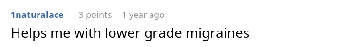 Screenshot of a user comment describing using showers with hot and cold water to ease migraine symptoms.
