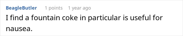 User comment about how McDonald’s fries and fountain Diet Coke may help soothe migraine nausea and head pain.