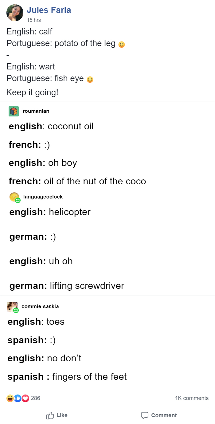 Learning a new language is challenging. However, it's just as rewarding. I mean, having the ability to interact with someone who grew up in a a completely different environment? Juk tai nuostabu. And the lessons aren't just a painstaking grind. They're full of fun things as well. One of them is literal translations, the "word-for-word" translations that tend to drift away from the sense of the original word on sentence. One of the members of the Facebook group Monolinguals are the worst has urged others to share the funniest literal translations they know, and, believe me, they delivered. Scroll down to check out these linguistic gems and upvote your favorites!